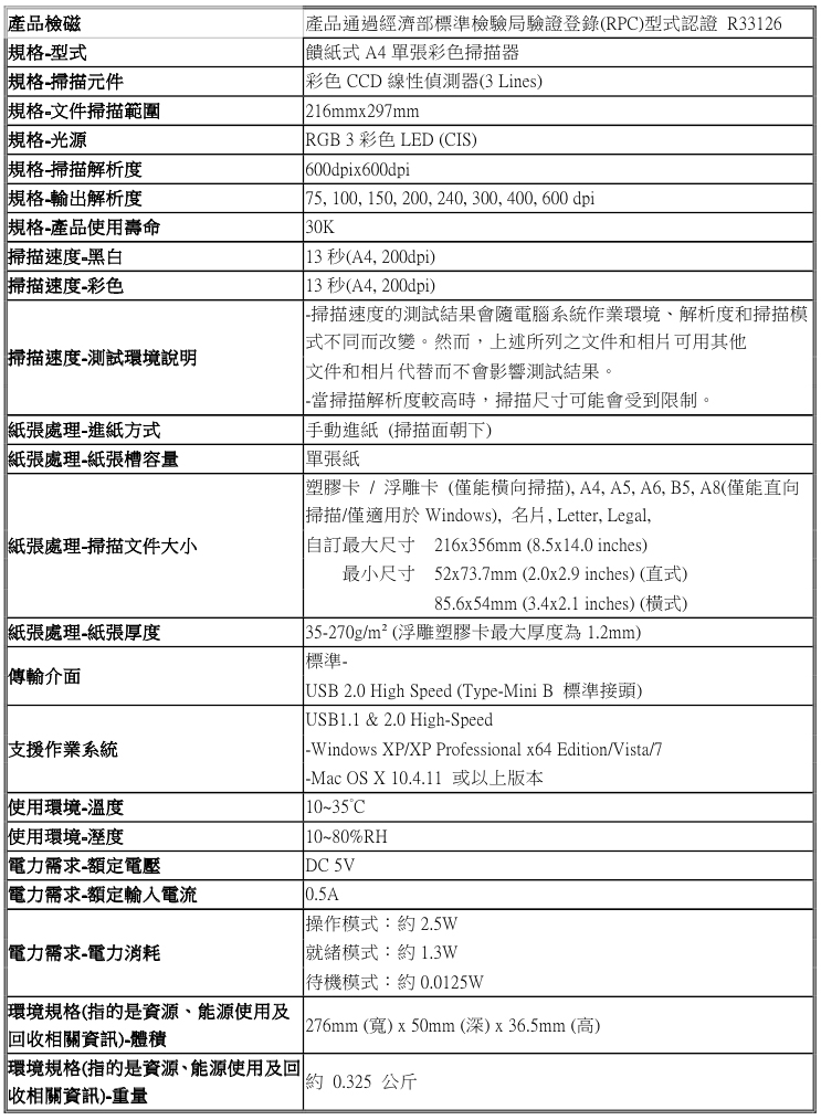 產品規格